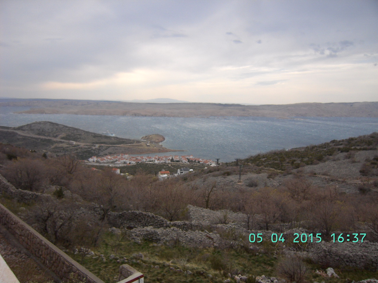 Bora ! Das ist der Sturm von den Bergen, der alles Bewegliche hinweg fegt. Er rast mit Geschwindigkeiten bis 150 km/h hinab ins Meer, erzeugt dort Gischtwolken, die sich nicht auflösen sondern periodisch gestaffelt die gegenüber liegende Insel treffen.