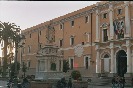Bei der anschließenden Stadtrundfahrt bewundere ich die schönen Einkaufsstraßen, den Dom - hier wird gerade von ca 10 Priestern gleichzeitig die Osterbeichte abgenommen - und den Stadtpalst mit der klugen Richterin: Sie sopll schon lange vor Napoleon ein vernünftiges Rechtssysten für Sardinien erdacht haben.