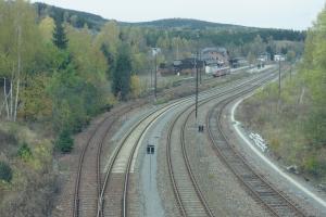 Die Bahnstrecke überquert offen den Erzgebirgskamm. Das letzte